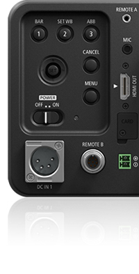 Den lilla kompakta och lätta ME200S-SH har omfattande anslutningsmöjligheter för monitor, utgång för extern inspelningsenhet samt fjärrkontroll, inklusive HDMI-utgång, Genlock och två 3G/HD-SDI-kontakter. Fjärrstyrning kan ske via två uttag, inklusive ett 2,5 mm-uttag och RS-422-terminal för Canon Remote Controller RC-V100*