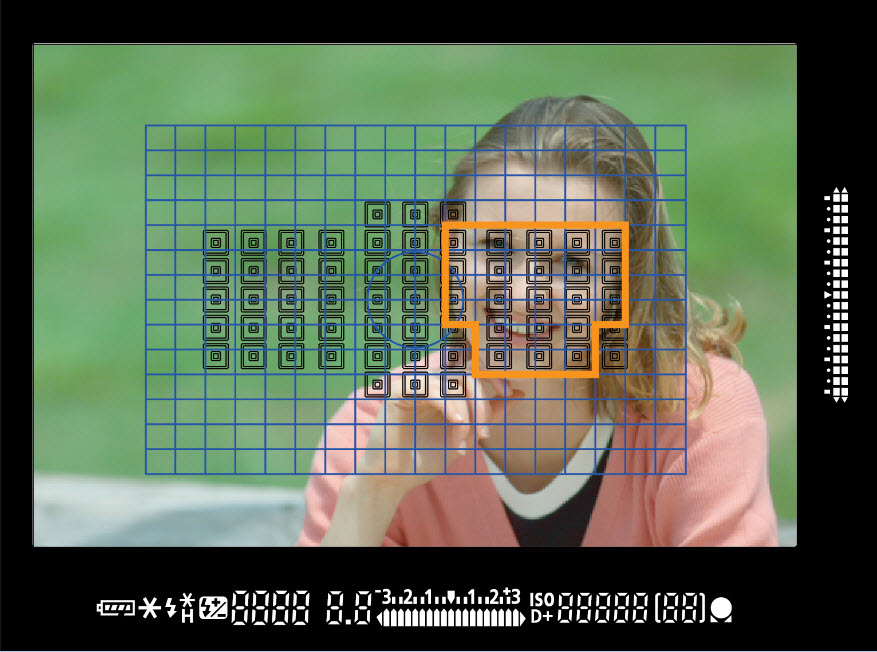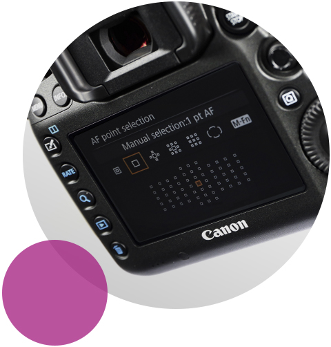 61-punkters autofokus med bred mätytaFokusera snabbt och exakt, även i svag belysning, med 61-punkters autofokus. 41 fokuseringspunkter av korstyp, varav fem är extra känsliga dubbla korssensorer, som ger ännu högre precision. Avancerad motivspårning och igenkänning EOS iTR (Intelligent Tracking and Recognition) AF-tekniken använder färg- och ansiktsinformation för att känna igen och spåra motiv när de rör sig i bildutsnittet. Autofokusens respons kan justeras så att den anpassar fokusspårningen utifrån miljön och motivet du fotograferar, så att andra motiv som tillfälligt passerar framför motivet inte stör fokuseringen.Val av fokuseringspunktAnvänd alla 61 AF-punkter tillsammans eller gruppera dem i flyttbara zoner som inkluderar motiv som inte är i bildens mitt. Alternativt väljer du bara en AF-punkt för att fokusera på en specifik del av motivet.