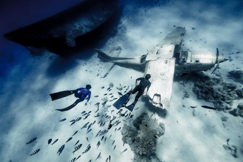 French freediver Arnaud Jerald, 24, achieved the world bi-fin record in 2020, reaching a depth of 112 metres without an oxygen tank. This image, taken by Canon Ambassador Franck Seguin one month before that attempt, captures a moment of concentration as Arnaud and his team prepare for a dive. Taken on a Canon EOS 5D Mark IV with a Canon EF 14mm f/2.8L USM lens (now succeeded by the Canon EF 14mm f/2.8L II USM) at 1/4000 sec, f/8 and ISO1250. © Franck Seguin