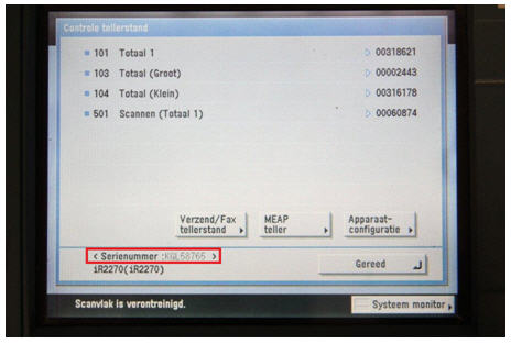 Du kan hitta serienumret med [123]-knappen eller läsa den på en etikett på maskinen, enligt beskrivningen i instruktionerna nedan.