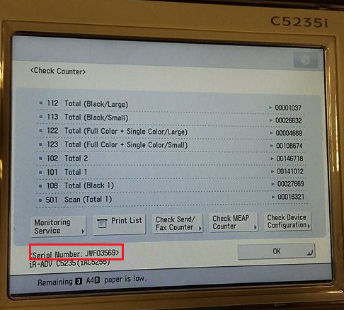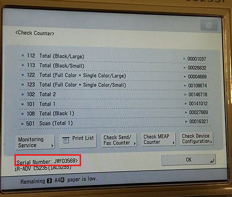 • Serienumret på din imageRUNNER är en sekvens av 8 alfanumeriska tecken.