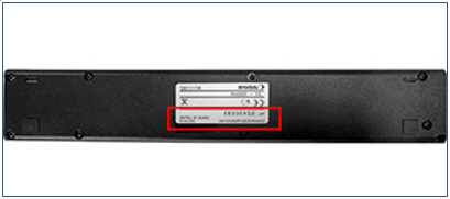 Serienumret sitter på en dekal på baksidan av enheten, ovanför strömbrytaren (1).