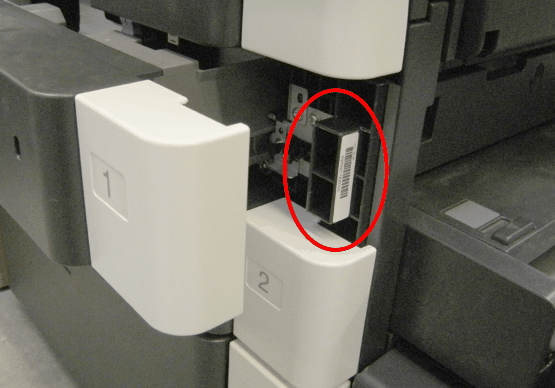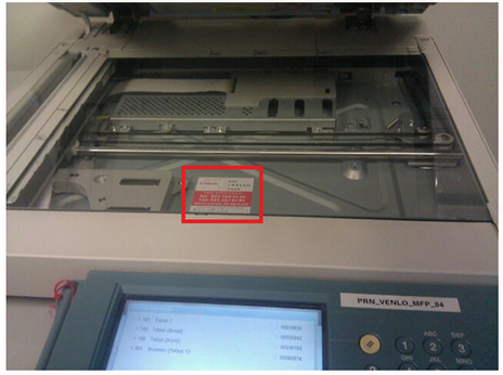 2. På vissa maskiner kan det även finnas på en etikett under glasplattan på skannern (lyft på locket till skannern för att se den).