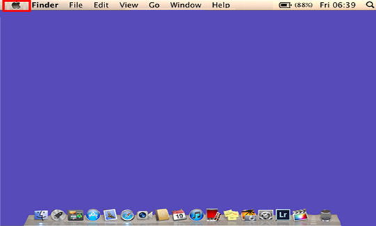 1. Klicka på [Apple]-logotypen (markerat i rött) längst upp på skärmen för att komma åt Apple-menyn.