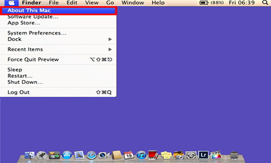 2. I Apple-menyn som visas klickar du på [About This Mac] (markerat i rött).