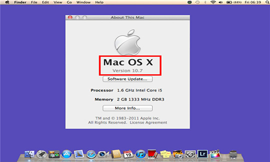 Exemplet visar att Mac OS X version 10.7 körs på datorn.