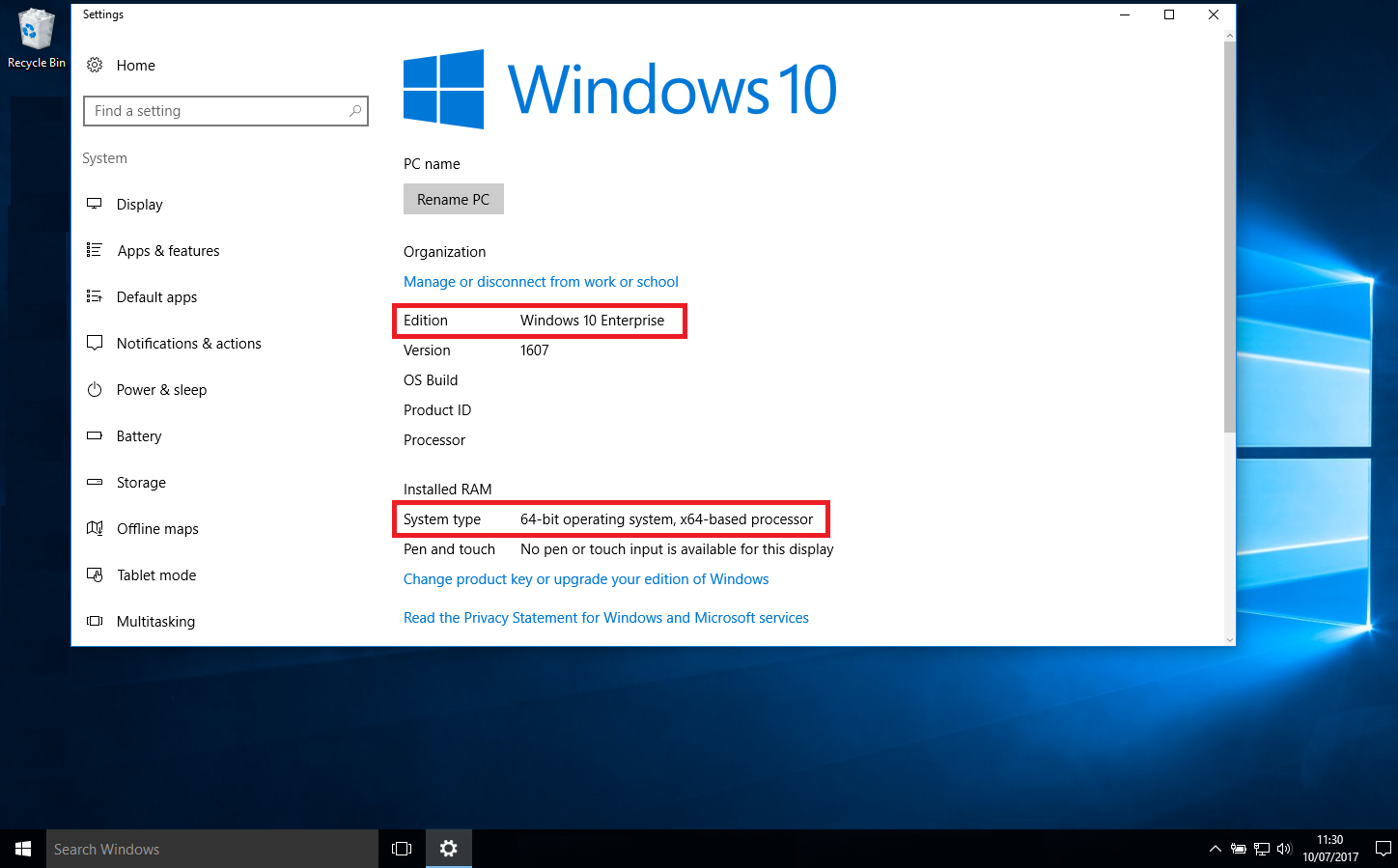 3. När informationsfönstret dyker upp visar Utgåva vilken version av Windows som körs och Systemtyp visar om det är en 32- eller 64-bitars version.