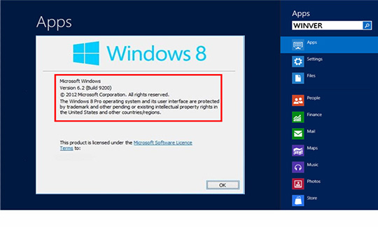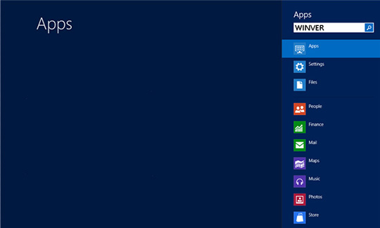 1. På startskärmen börjar du skriva ordet WINVER. Då visas ett sökfält till höger på skärmen.