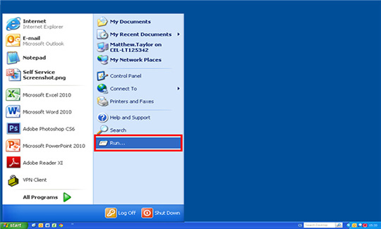 2. I menyn klickar du på [Run…/Kör...] (markerat i rött).