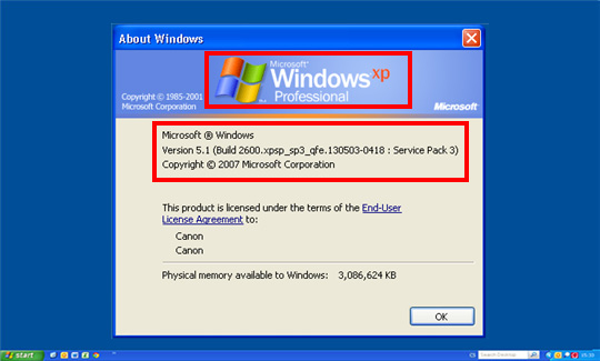 Exemplet visar att Windows XP 32-bitarsversion körs på datorn.
