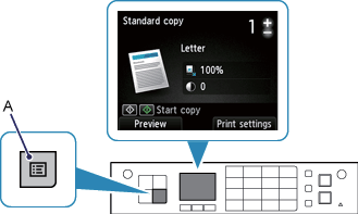 1. Tryck på knappen [Meny] (A) på skrivaren.