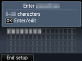 ] (B) för att välja tecken på tangentbordet och tryck sedan på knappen [OK] för att ange det.