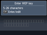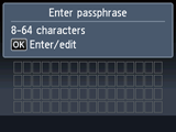 4. En av skärmarna nedan visas på skrivaren, beroende på vilken säkerhetsmetod åtkomstpunkten använder.