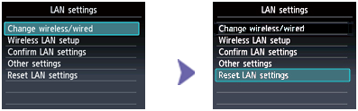 ] (A) för att gå till ikonen [Reset LAN settings/Återställ LAN-inställningar].