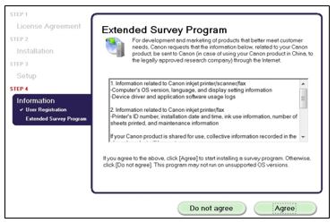 - Om du vill delta i Extended Survey Program klickar du på [Agree (Jag accepterar)]. Alternativt klickar du på [Jag accepterar inte].