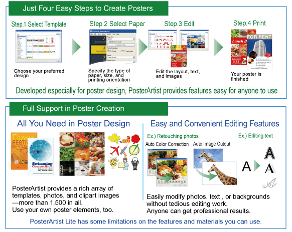 Detta program är en version av PosterArtist med begränsade funktioner och följande funktioner är inte tillgängliga i PosterArtist Lite: