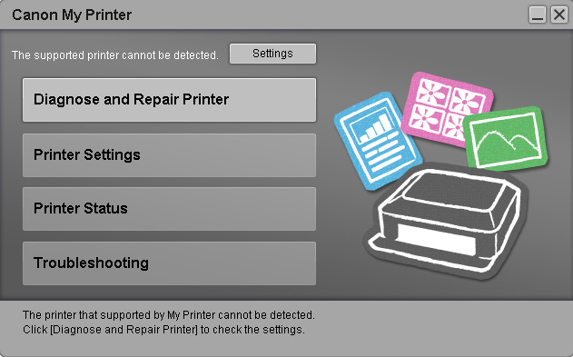 My Printer kan utföra en felsökning om problem uppstår vid installationen av drivrutinen och eventuella problem som hittas repareras.
